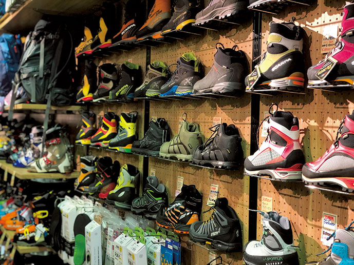 1982年創業と40年近い歴史がありながら、アウトドアアクティビティ全般のフレッシュなアイテムが店内を埋め尽くす。その秘密はバイイング。さまざまな山遊びを楽しむバイヤーの石田啓介さんはじめ、スタッフがさまざまなアクティビティに精通しており、ギアやウエアに関しても最新のトレンドを意識しつつも、使い勝手など実用性にもしっかりこだわってセレクト。春夏は登山やトレイルラン、秋冬はスキーや雪山登山のラインナップに力を入れているが、その他、普段遣いにちょうどいいウエアやキャップなども見逃せない。「ライフスタイルとしてのアウトドアを提案」というテーマを、商品でも接客でも力強く打ち出しているのが同店の個性だ。