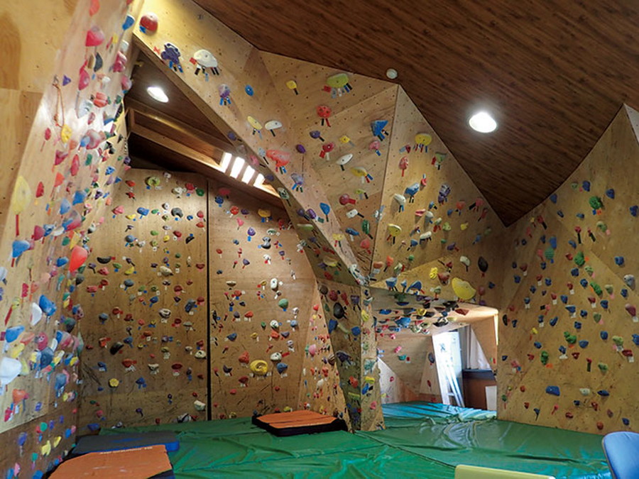 店舗奥にはクライミングウォールがあり、1時間500円で利用できる。