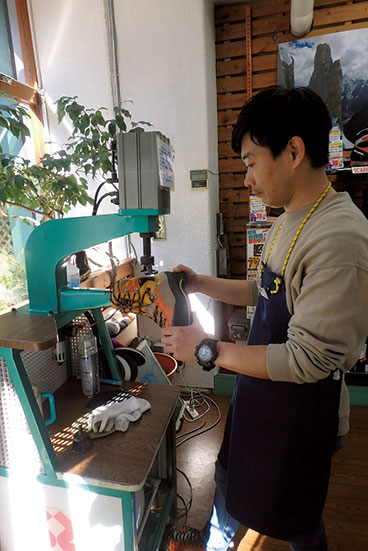 天王寺駅から東へ徒歩6分、ややわかりにくい立地ながら、70年余り大阪の登山者に親しまれてきた老舗だ。こだわりのセレクトで揃えられたシューズはみごと。オーナーがシューフィッターで、快適な山歩きのための靴選びをしっかりとサポートしてくれる。各ブランドの登山靴に関する商品知識はもとより、革靴など、靴の素材に関しても造詣が深く、”身体に無理のない登山“を足元から実現させるお店。日本ではめずらしい、特注のブーツチューンナップマシーンを導入しており、当たって痛い靴を、足に合わせて部分的に広げることができるのもこの店ならではのサービス。靴を預けておくのではなく、その場で作業してもらえるので、合わない靴の調整を目的に、四国や・中国、中部地方など、遠方からわざわざ来店する人も多い。他店で買って失敗したものでも対応してもらえるので、困っている人はぜひ相談を。