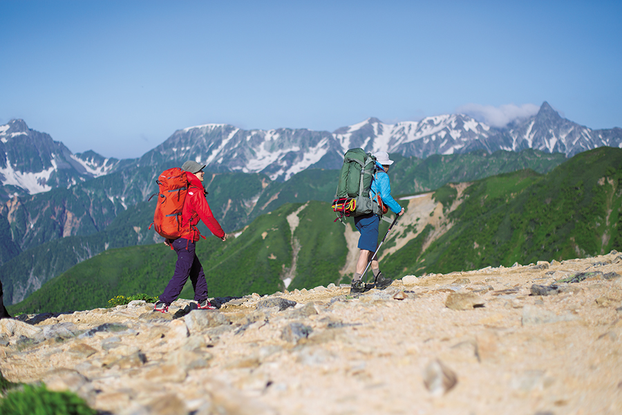 プロドラマーとして数々の有名ロックバンドで活躍する野崎真助さん、野崎真希さん夫妻が発した一言。「じつは、何年も前から登山に憧れていたんですよ」そこから急発展して、僕たちは常念岳から燕岳へと続く稜線に向かった。時期は7月中旬、それは梅雨どきの奇跡的な晴れ間を願っての旅であった。