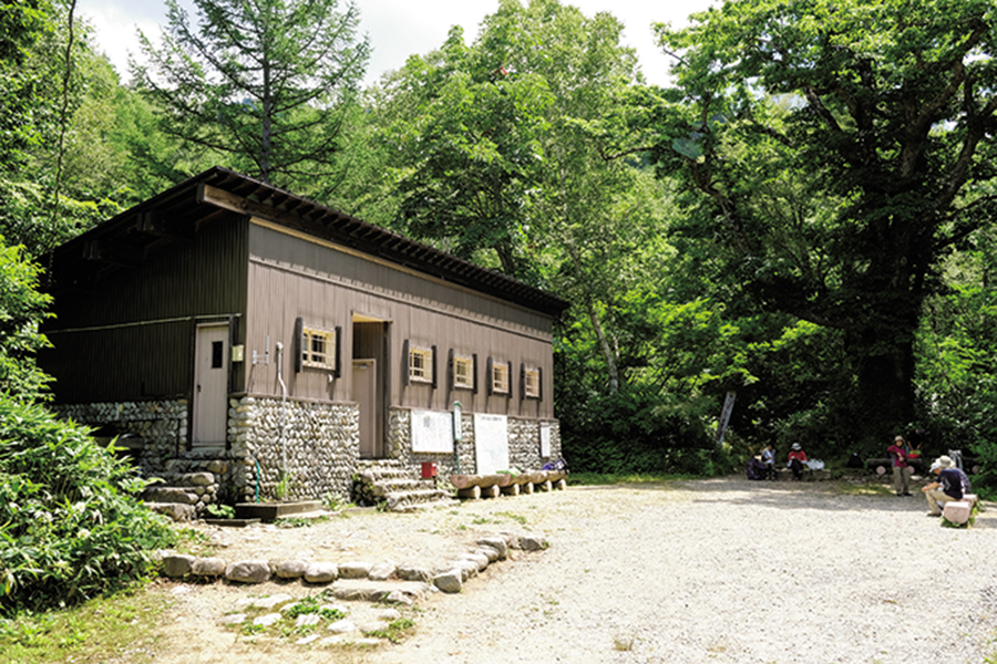 ①折立(標高1,350m)が起点。トイレ、水道、自動販売機も完備。出発前の準備を整えよう。