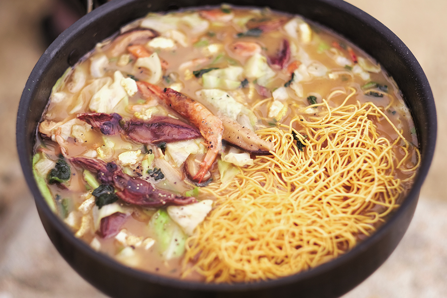 キャベツの残りに、富山名物ホタルイカの素干しなどを入れたカタ焼きソバ。