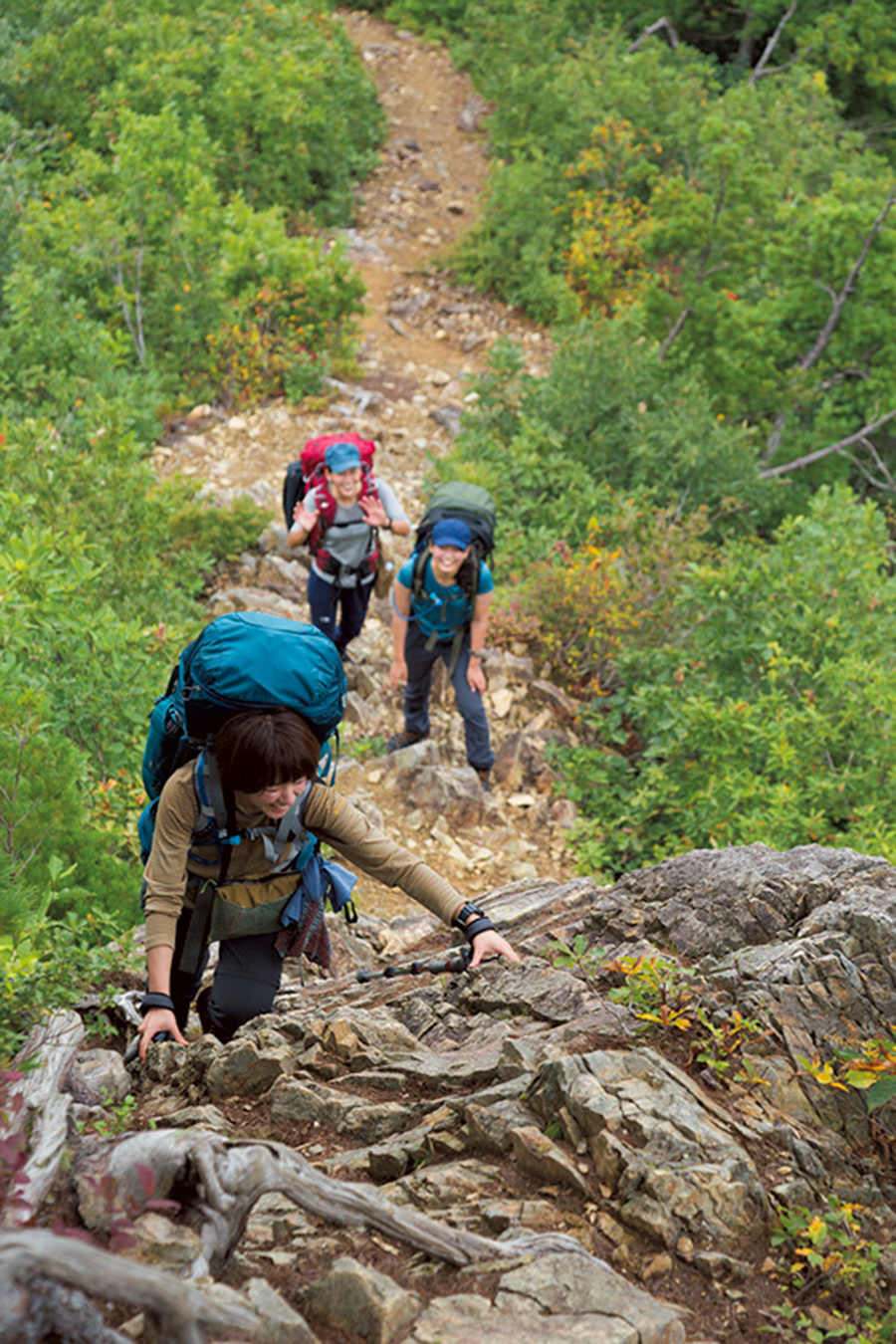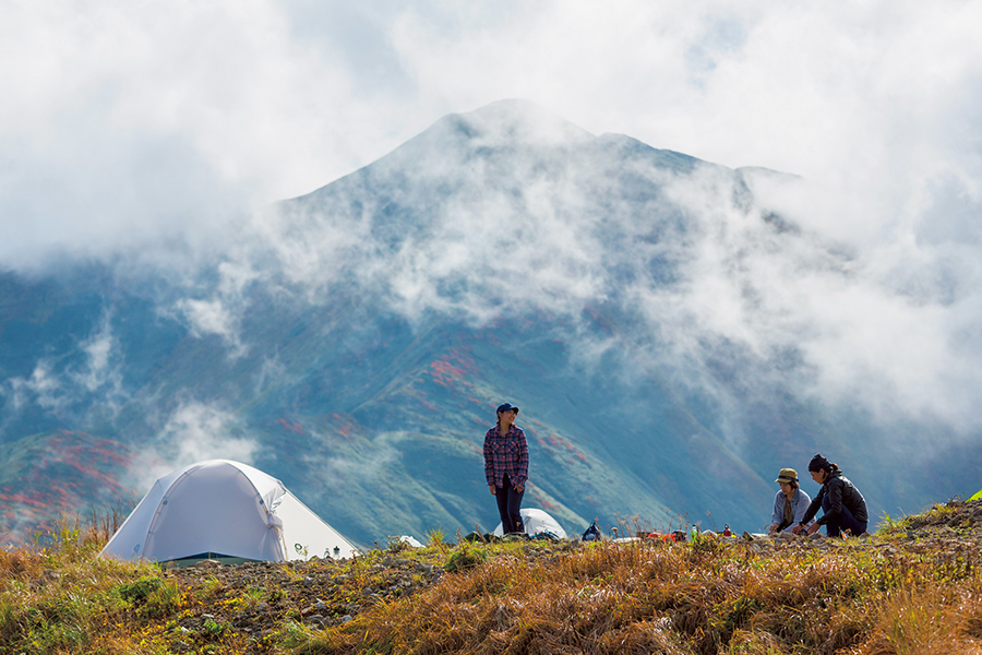夏山登山のにぎわいから落ち着きを取り戻し、山は木々が真っ赤に燃える紅葉シーズンへ。東北屈指の長い稜線をたどる、あこがれの飯豊連峰は想像を超えるような静寂に包まれていた。テントを担ぎ健脚女子がゆく、赤く熱い縦走旅のはじまりはじまり。