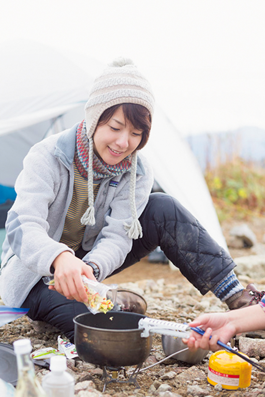 そして3人目、今回の妹分がマウンテンハードウェア広報相当の新井春菜さん。登山に目覚めたのは数年前だが、そのバイタリティでめきめきと経験値を高めているアウトドア業界の元気印。