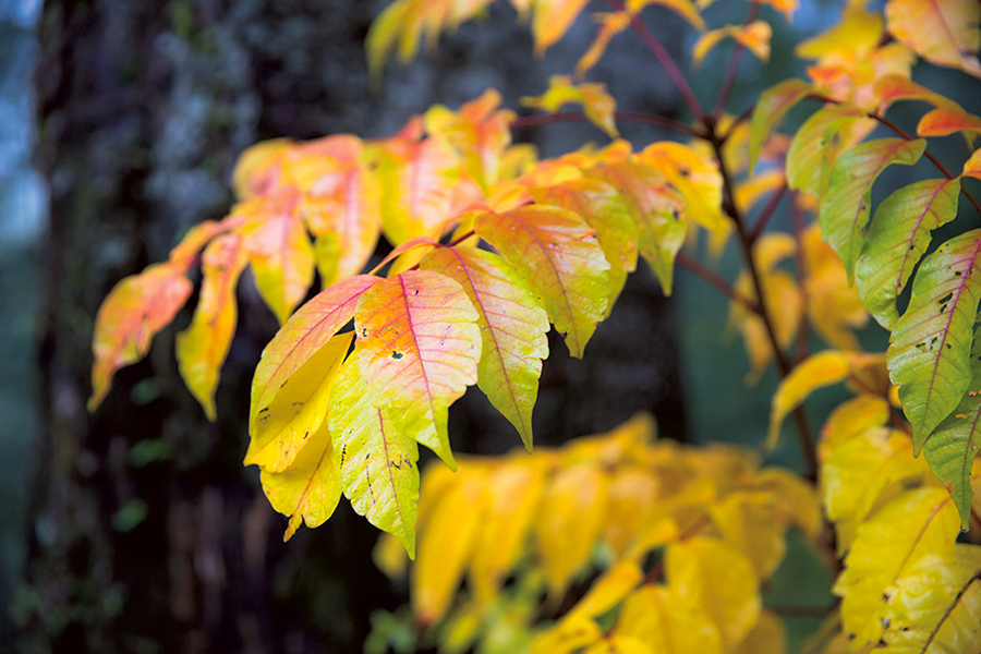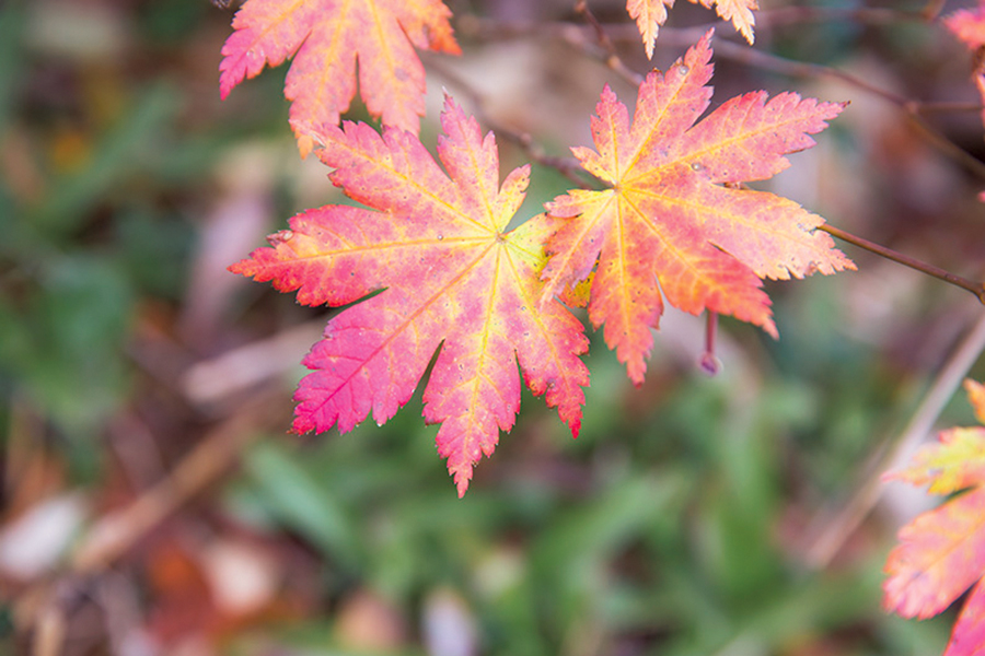 ハウチワカエデと思われる赤みを帯びた葉。これからもっと色づくはずだ。