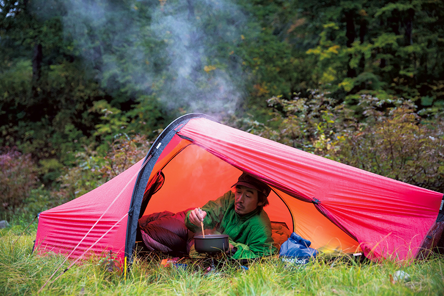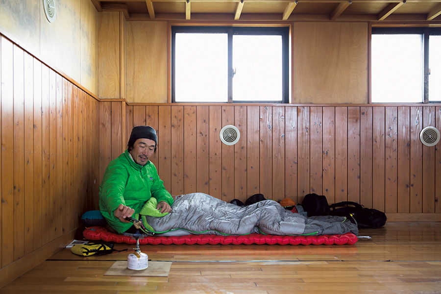 最後には逃げ込むようにして竜門小屋に到着。この日は行動中に会ったのはひとりのみで、小屋に泊まるのも僕以外にはいないだろう。そこでいちばん落ち着ける場所に荷物を広げ、小屋にあったバーナーの下敷きの上で火をつける。