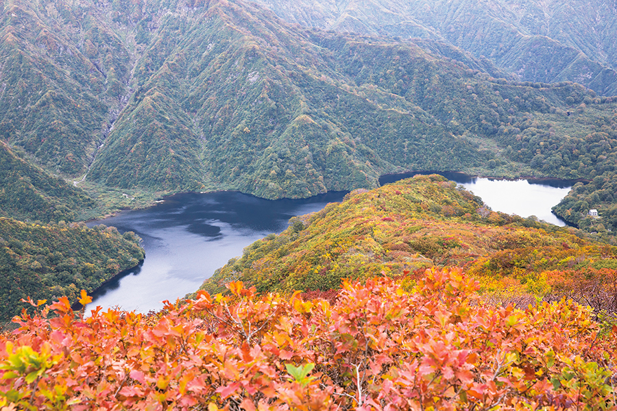 大鳥池がある朝日連峰北部よりも、こちらの南部のほうが紅葉は良好。