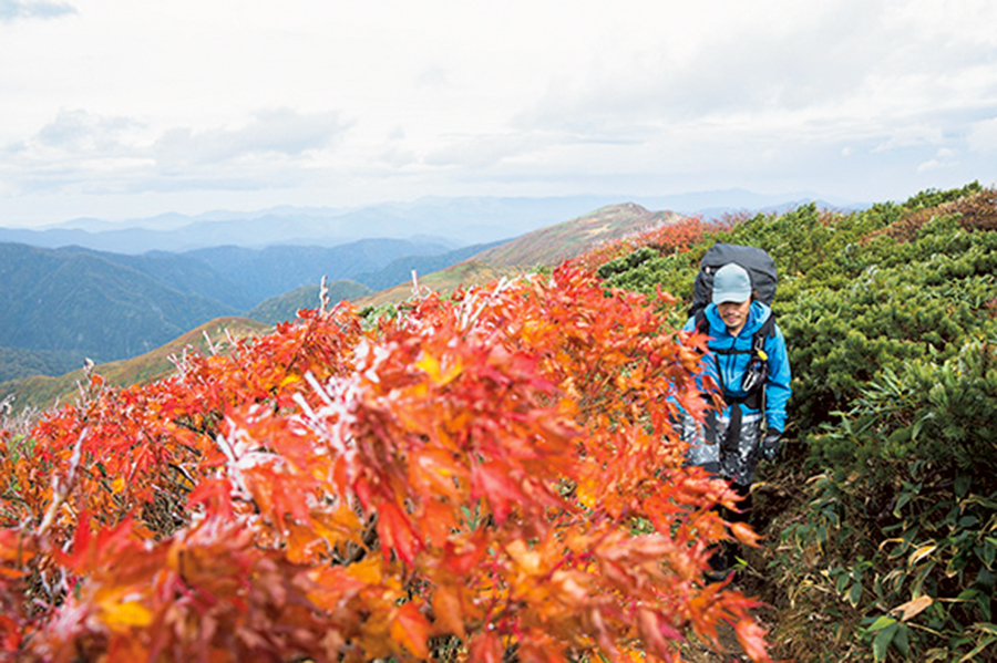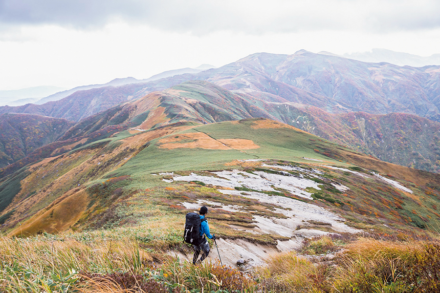 うねうねとどこまでも続く巨大な山塊。そこには伝説を持つ池があり、名水も湧き出している。東北の山のよさを濃縮し、山形と新潟の県境に静かに横たわるのが朝日連峰だ。僕はひさしぶりにその地に足を踏み入れ、緑の森から紅葉の峰へと歩き始めた。