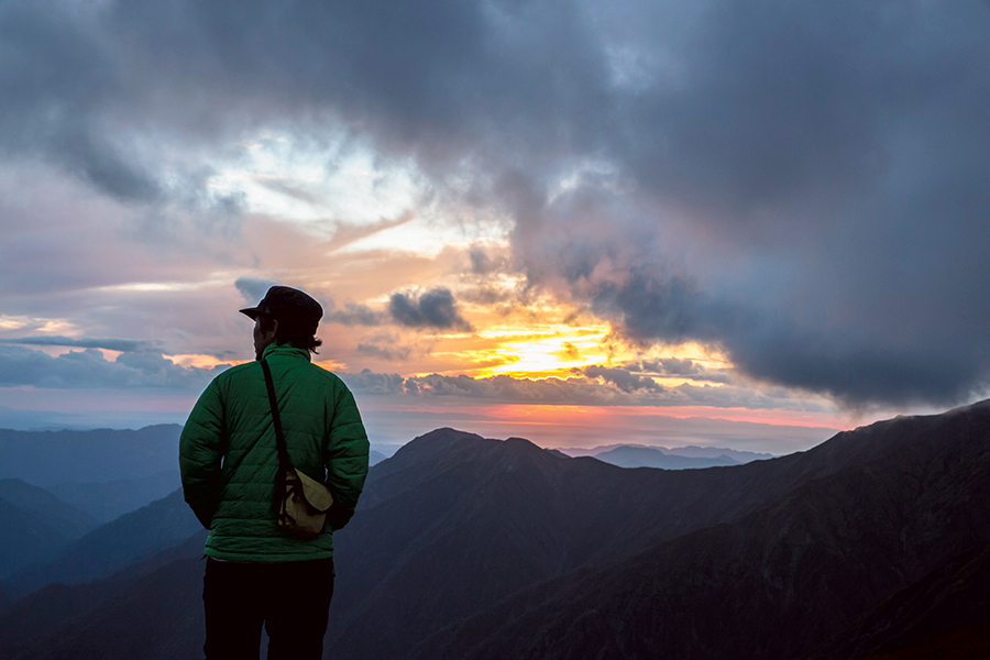 雲のあいだに夕日が見え隠れしている。拾った電波で天気予報を確認すると、明日は昼前から晴れてくるという。その時間ができるだけ早いことを祈りながら、静かな山小屋の中で寝袋に横たわった。