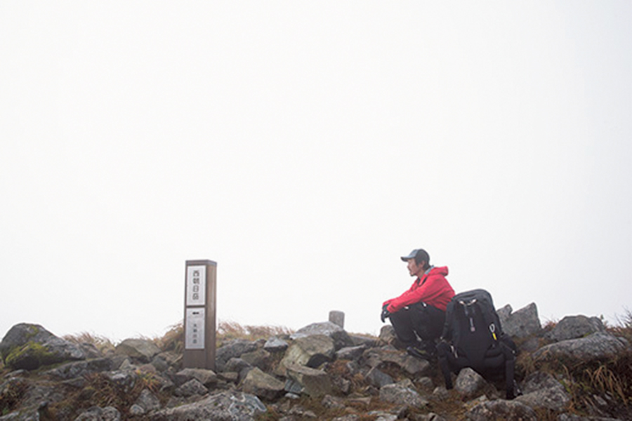 西朝日岳の山頂に到着。僕はそのまま1時間以上、この場所で天候の回復を待っていたのであった。