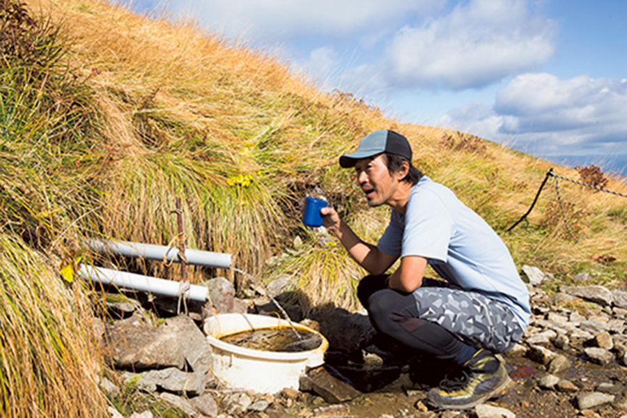 意気揚々、大朝日岳を目指していく。その途中では「金玉水」の水場で喉を潤した。高校時代に初めてやってきたときは、仲間の山岳部員とともに「きんぎょくすい」ではなく「きん〇〇すい」と言ってはしゃいでいた思い出の地だ。