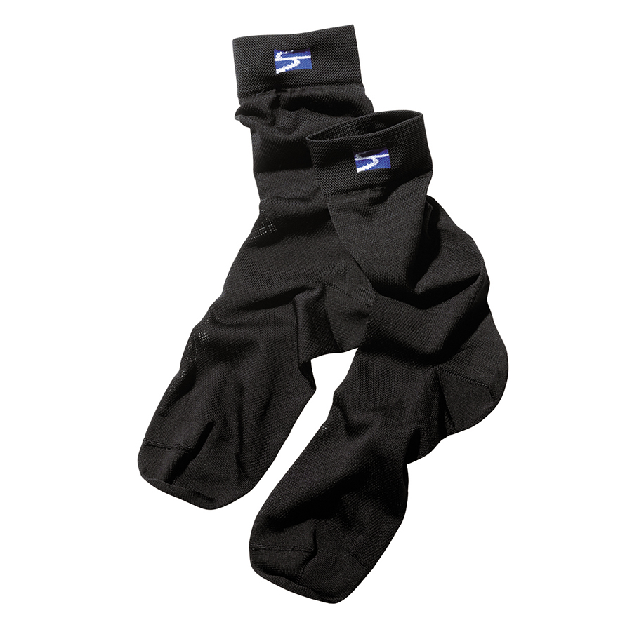 撥水性のある生地で作られており、吸汗速乾性の靴下を重ねることで足を常にドライに保ってくれる。靴擦れを軽減する効果もある。