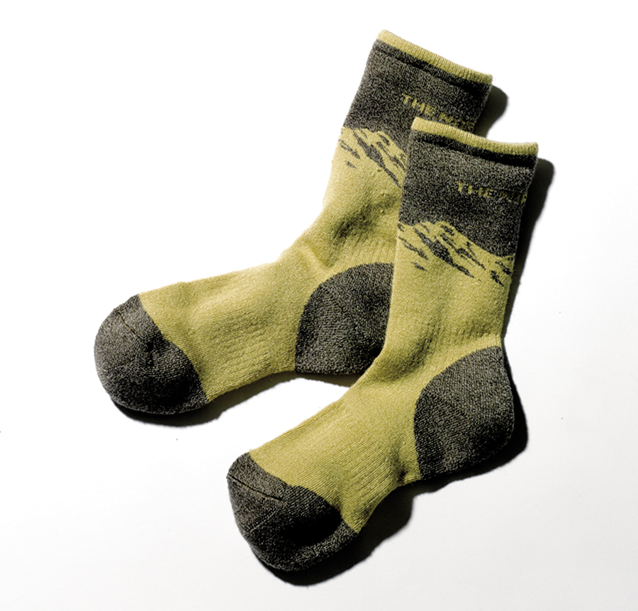 重視するのはクッション性と保温性。剛性が高い登山靴を履くことになるので、裏地すべてがパイル編みでクッション性に優れるモデルがいい。このパイルによって生地が厚くなると保温性が高くなり、冬山にも対応できる。