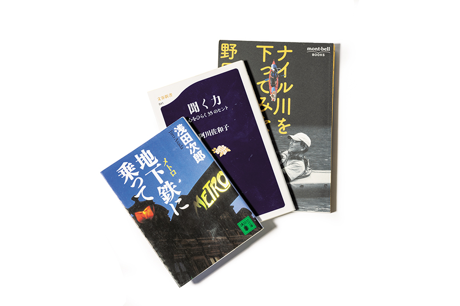 アルプスに限らず、単独で山に登るときは本を装備に潜ませます。会津朝日岳から会津駒ヶ岳まで縦走したときは、阿川佐和子『聞く力 心をひらく35のヒント』(文藝春秋)と、野田知佑『ナイル川を下ってみないか』(ネイチュアエンタープライズ)を。