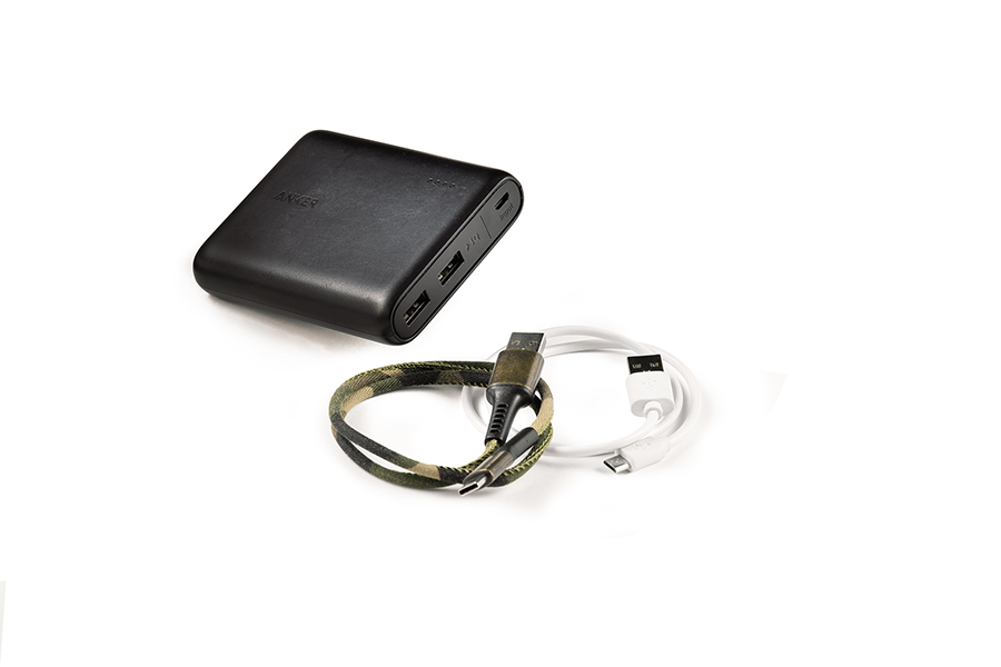 あと恐ろしいくらい速く充電できる。ケーブルは白がMicroUSBでカメラ用、カモフラがtypeCでスマホ用。