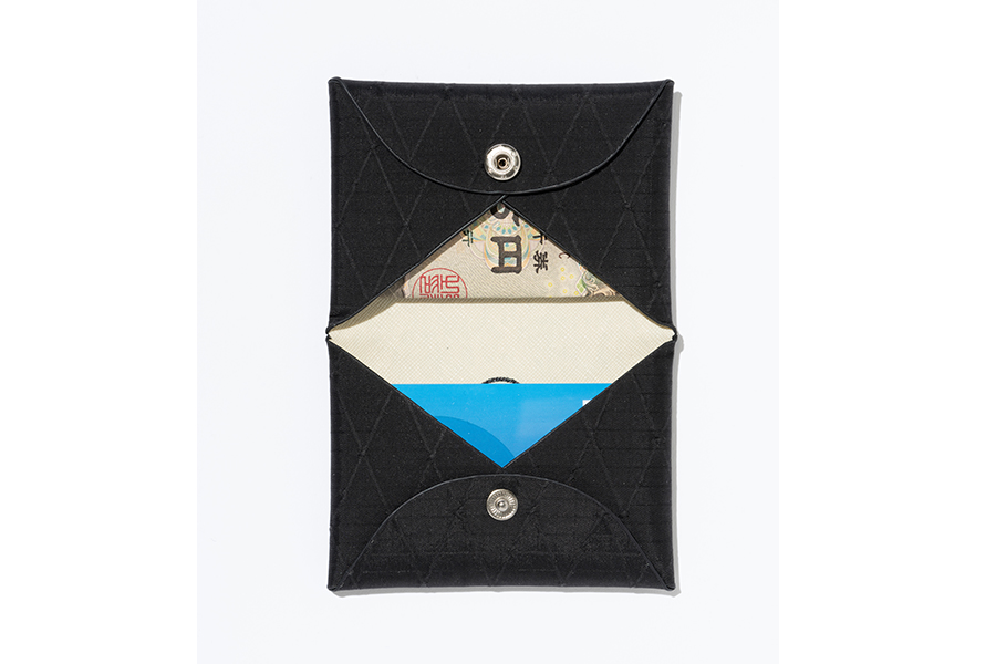当初の「山のミニマムパスケース」の使い勝手はそのままに、カードケースや山財布としてなど、使い勝手はアナタ次第。紙幣は三つ折りにすればぴったりサイズ。カードなら片側に7枚程度収納可能です。そのほかコインケースにも◎
