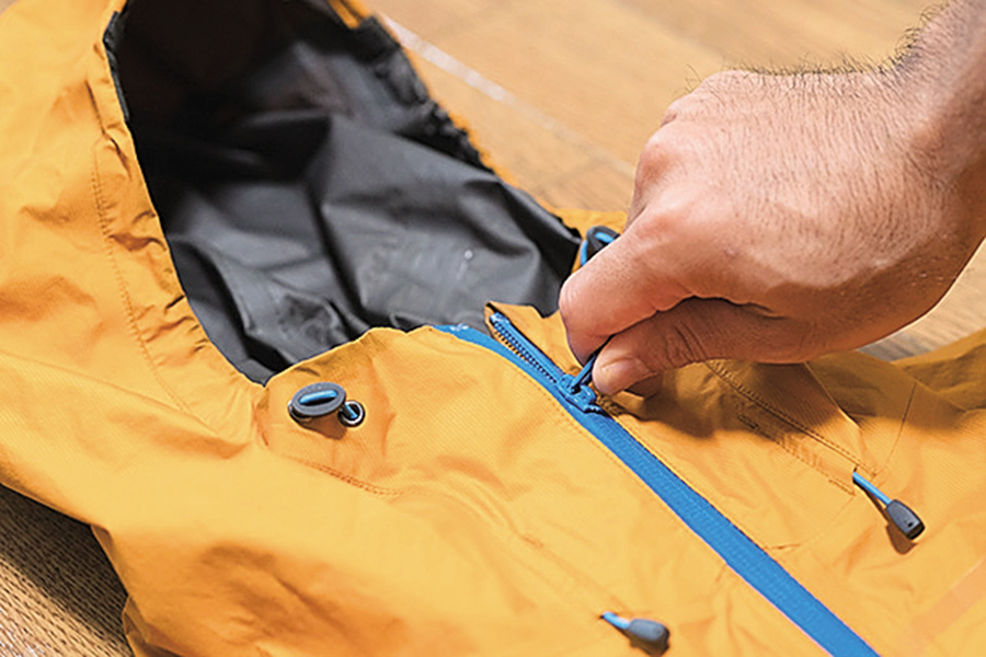 首など肌に直接触れる部分も多いアウターシェル。生地表面の汚れはもちろんだが、目立たなくても裏側にも皮脂汚れなどが付いている。汚れは撥水、透湿性能への影響はもちろん、生地自体の劣化にもつながるので、シーズンごとではなく、こまめに洗った方がいい。今回は手軽にできる洗濯機洗いの方法を紹介する。
