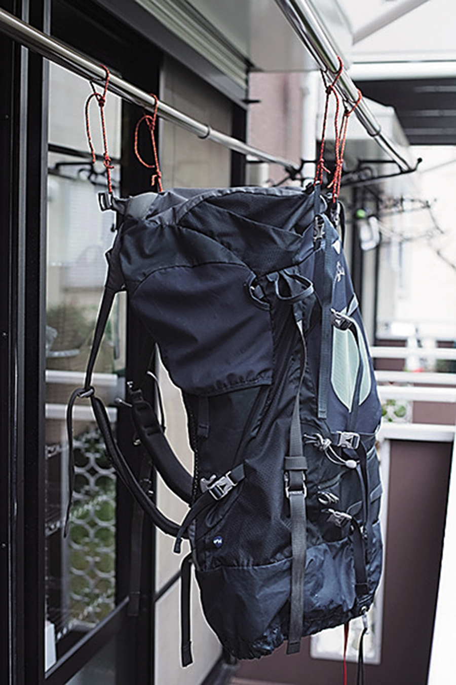 冬はもっぱら日帰りや小屋泊という人も多いのでは? 大型バックパックがしばらく眠りそうならこのタイミングで洗ってしまおう。部分的な汚れをブラシやよく水を絞った布などで落とすだけでもいいが、時間があれば丸洗いを。意外と雨、汗などによる汚れも無視できない。全体的にさっぱりさせよう。