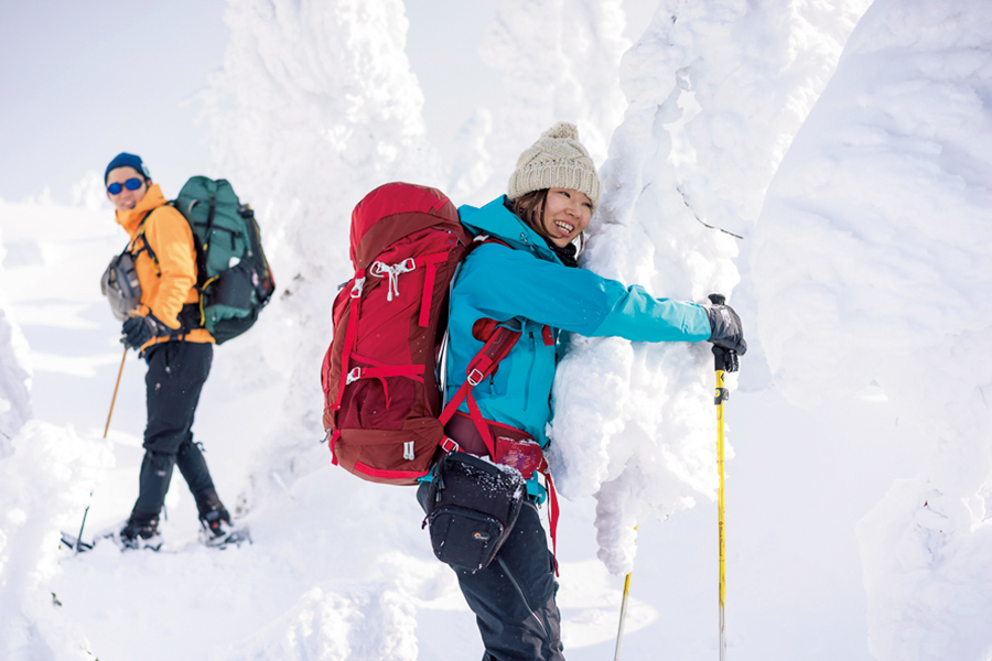 道標は少なめな ので、踏み跡がないときや視界が悪い場合は特に注意が必要だ。樹氷が形成されるのは1月上旬から3月中旬頃までだが、3月に入ると樹氷の質はやや落ちる。
