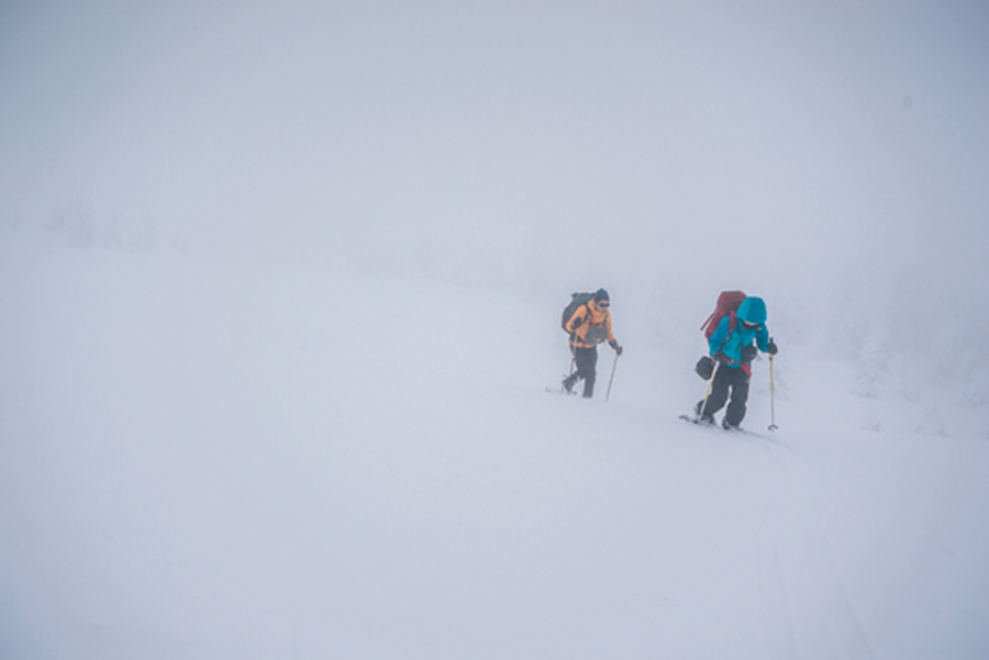 ピッケルやアイゼンは不要で、技術的な難しさはない。ただし、スノーシューかワカンがないと、ラッセル地獄でまったく進まないので、必ず準備していくこと。冬の時期は天候の変化が激しく、また読みにくいので慎重にいきたい。