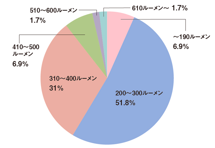 全国でもっとも売れたヘッドランプ、明るさ別の割合は?