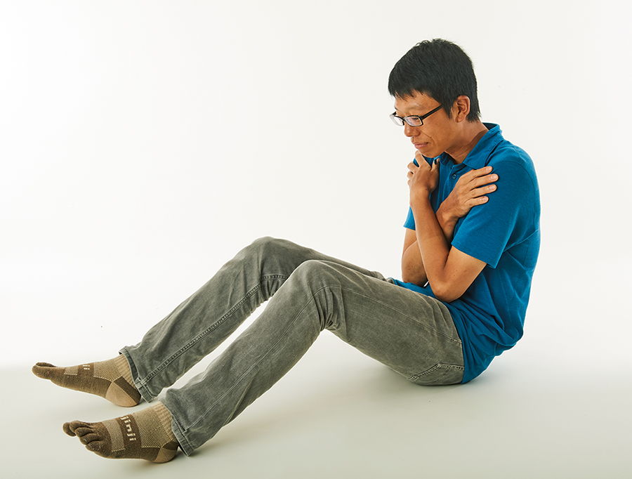 寝袋に入ったままできる現実的な方法が腹筋だ。こちらも30 回してから撮影してみると、全身の体温が上昇しているのがわかる。これは期待以上の結果が得られた。だれもがすぐに実践できるおすすめの方法だ。