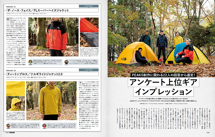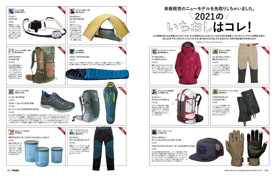 【本日発売!】高評価の山道具が大集合『PEAKS』1月号「ギア・オブ・ザ・イヤー2020」