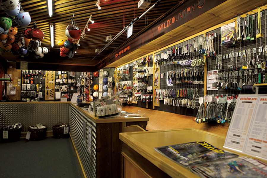 ’38年に欧州から高品質な登山用品を輸入する生活協同組合として立ち上がった同店は、’96年にクライミングウォール「ピナクル」を併設した超大型店舗として改装されている。登山靴を試し履きするテストトレイルはもちろん、実際にストーブを着火できたり、店内の水場で浄水器の使用感を試したりできる体験型店舗は、何時間滞在しても飽きることはない。