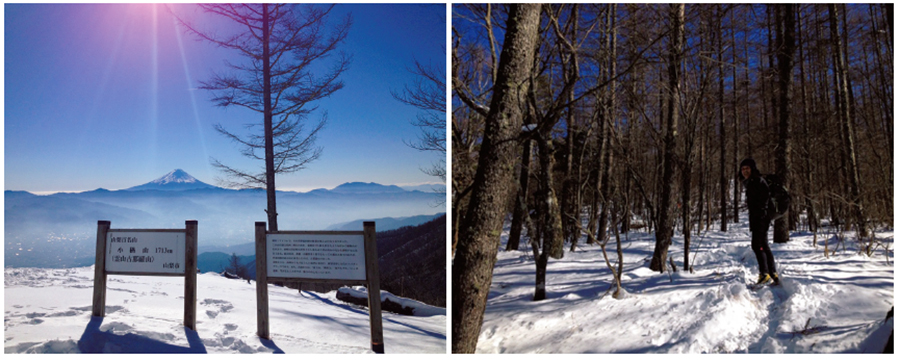 コースによって初心者から山歩きに慣れた人まで幅広く楽しめるところが魅力。厳冬期でも簡易クランポンで行ける山なので、はじめての雪山歩きにもおすすめだ。