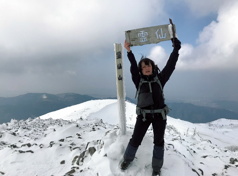 冬は初詣に登る人も多く、登山者的には「雪山」というイメージではないが、標高は924mあるので、じつはそこそこ雪が楽しめる山だ。登山口付近に雪はなくても、途中から積もっていることも多いので、クランポンなどの滑り止めはマスト。