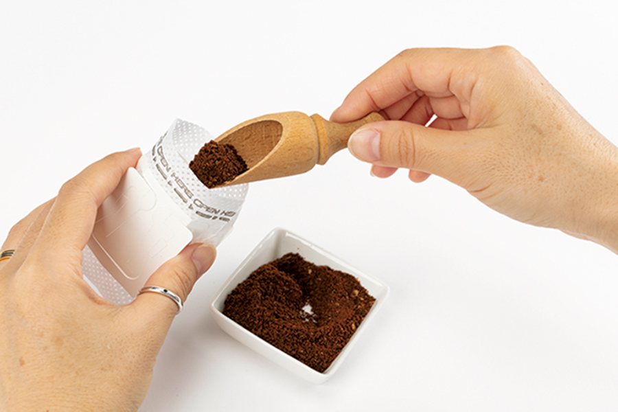 さっそくカップにセッティング。お気に入りの豆をドリップスタイルで持ち歩けるのはうれしい!