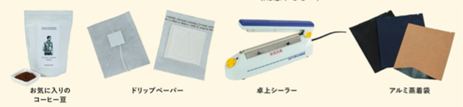 ドリップペーパーと袋はネットで購入可能。シーラーは価格帯の幅が広いが、安価なモデルだと外袋を溶着できない場合があるので、対応温度などを要確認。アルミ蒸着袋は光は遮断できるが酸化を防ぐ効果はないので、作成後は1~3日以内に飲み切ろう。