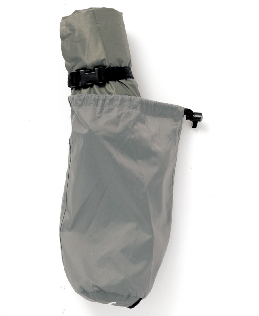 雨や結露でのテントの濡れは、大半がフライシートのみ。そこで収納時には水分が移らないようにフライとインナーテントを分離。撤収時が大雨ならばコンパクトさよりもスピードを重視し、たたむのをやめ、一気に押し込む。そのために収納袋はあらかじめ大きめがいい。