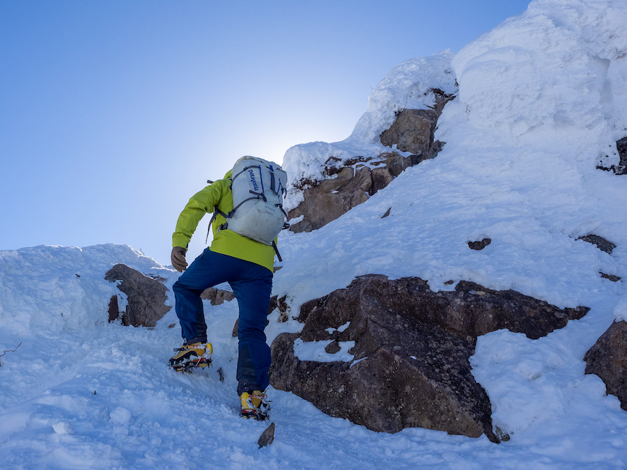 使用用途は――ずばり、アルパインクライミング。それも、スポーツ的なアイスクライミング等ではなく、がっつり山に入り込んで悪条件と格闘するような登山には最高の相棒となるでしょう。そこまでいかなくても、北アルプスや南アルプス、八ヶ岳南部あたりの3000m級の本格雪山登山をする人なら、これを選ぶ価値は十分にあると思います。3000mの稜線上での安心感、快適性がぐっと増すであろうことは保証します。