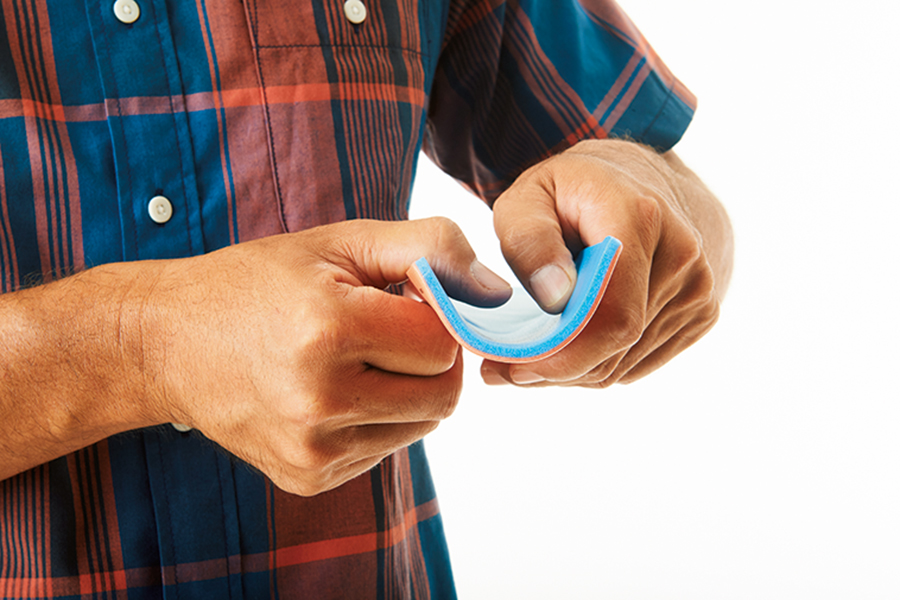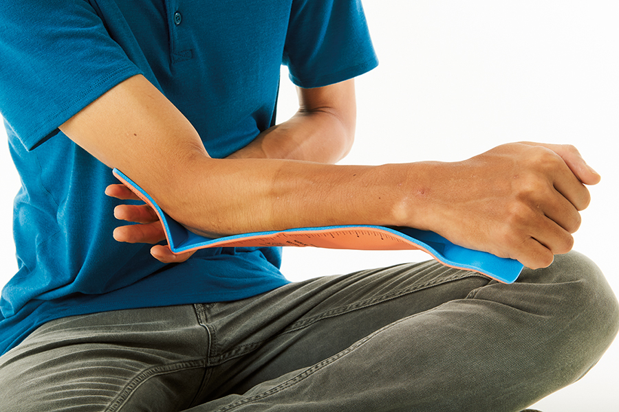 サムスプリントは短辺を曲げることで長辺方向に動かなくなる特徴がある。こうすることで患部を固定できるのだ。まずは正しい使用方法を覚えよう。