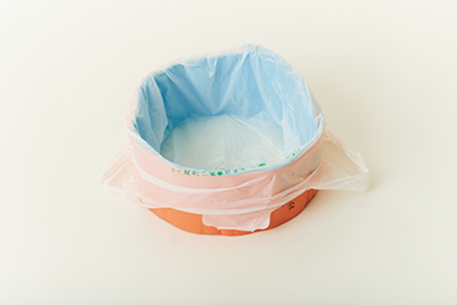 円の形にしたサムスプリントの上にビニール袋を被せれば、簡易バケツを作ることができる。トイレにもなるし、突然の嘔吐にも対応可能だ。