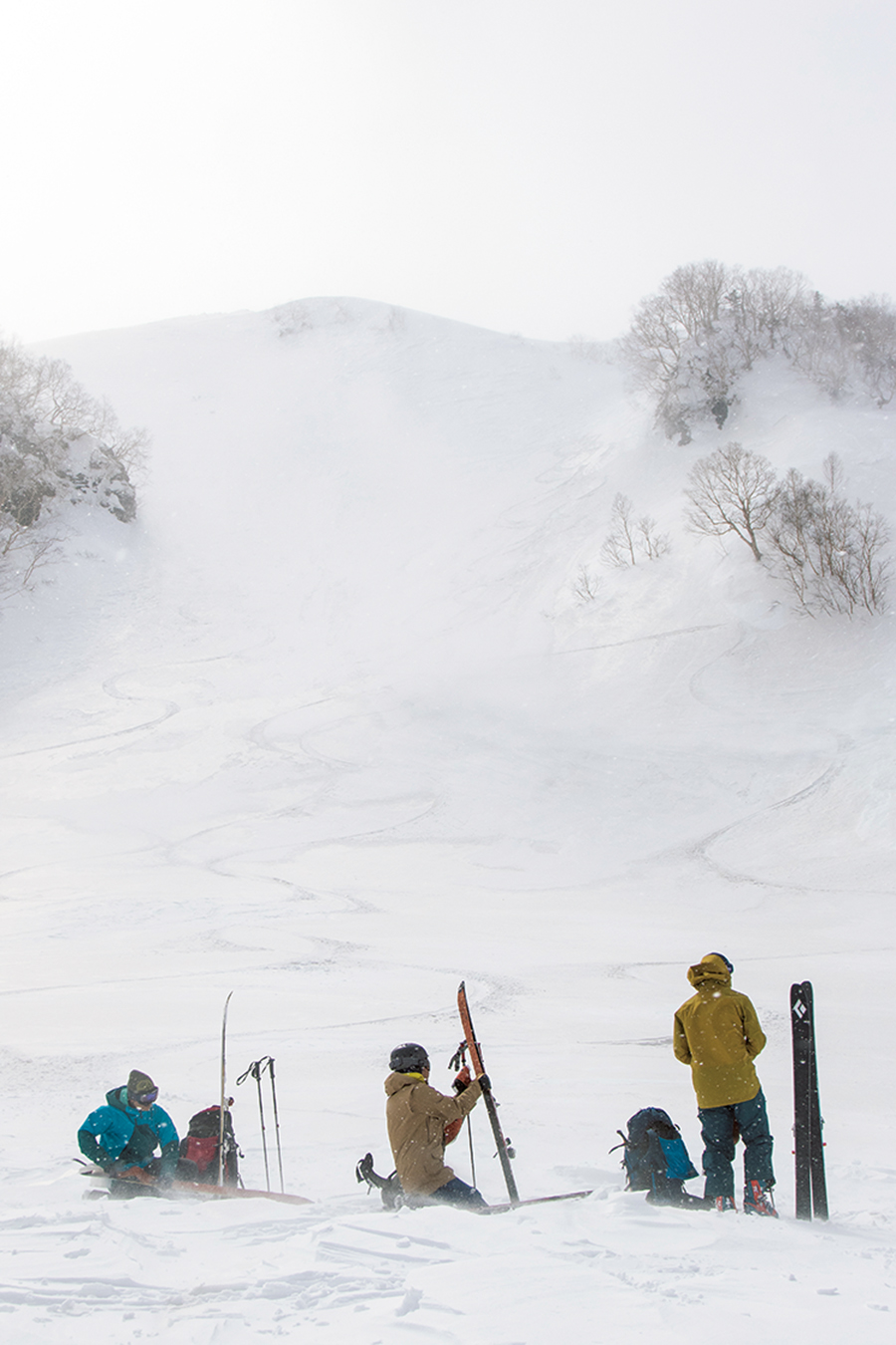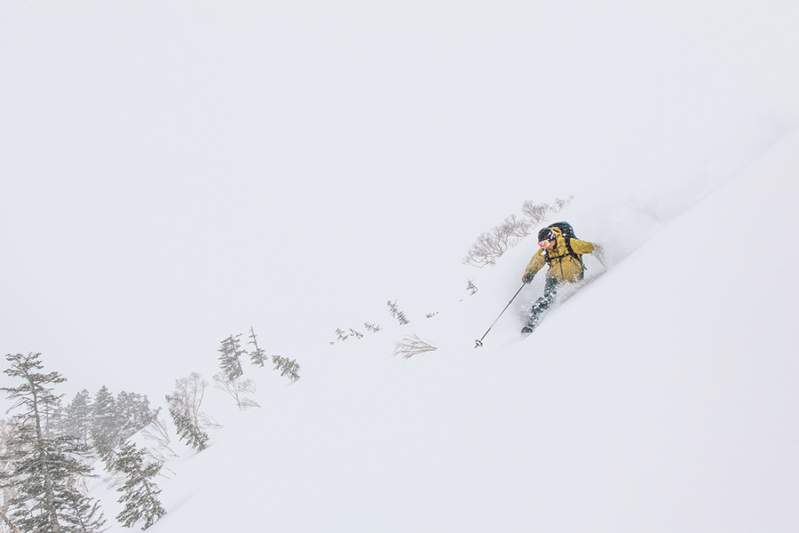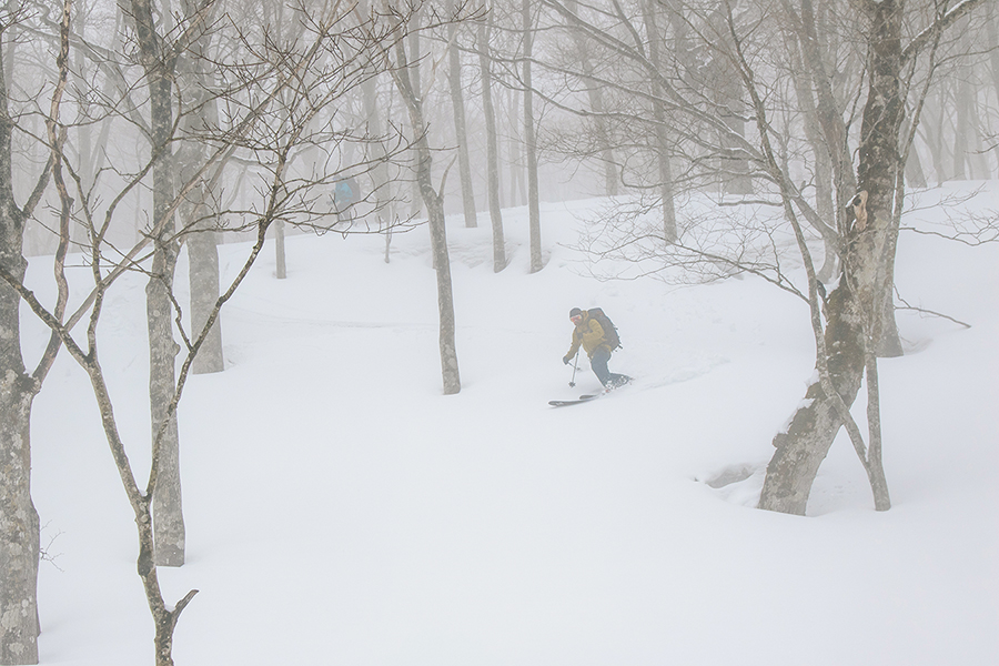 その後も、ほどよい斜面を見つけて、そこにスキー板を走らせていった。つねに渋めのルートを選び、玄人たちを唸らせる斜面へと連れていく中野ガイドの本領発揮である。