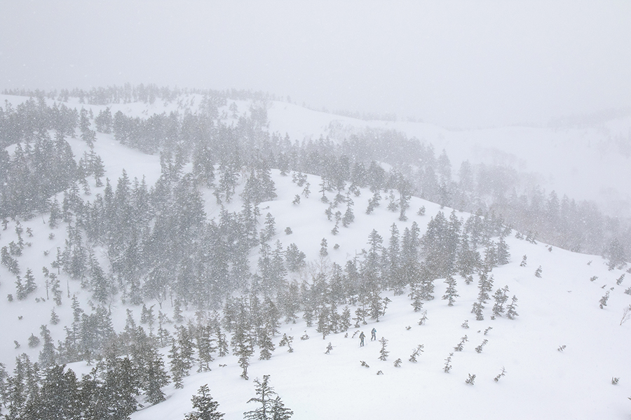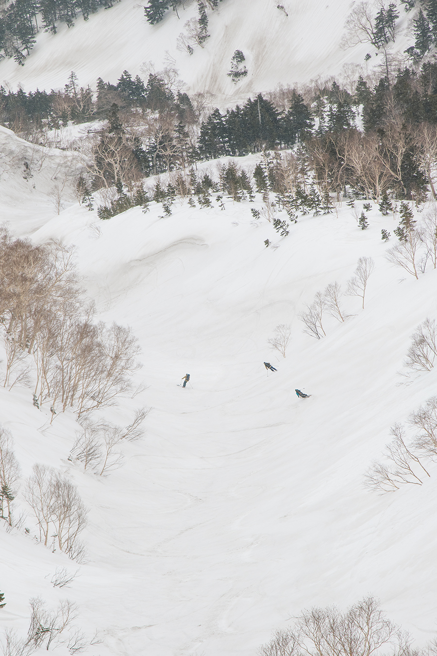 その後、もう一度だけ標高を上げて、蓮華温泉まで続く深い谷間を滑り降りていった。