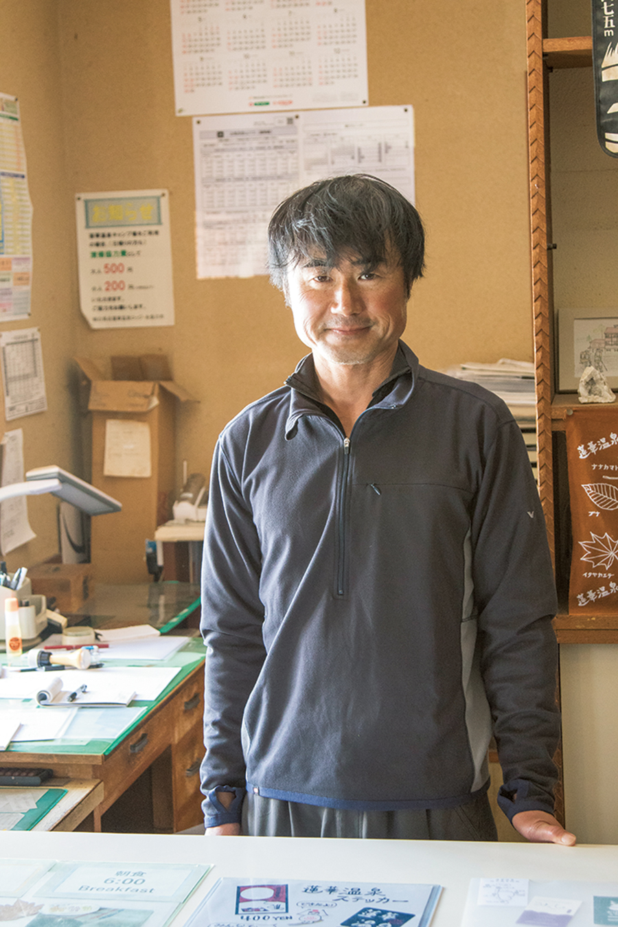 いつも温かく出向かえてくれる蓮華温泉ロッジ、田原家4代目オーナーの田原伸男さん。