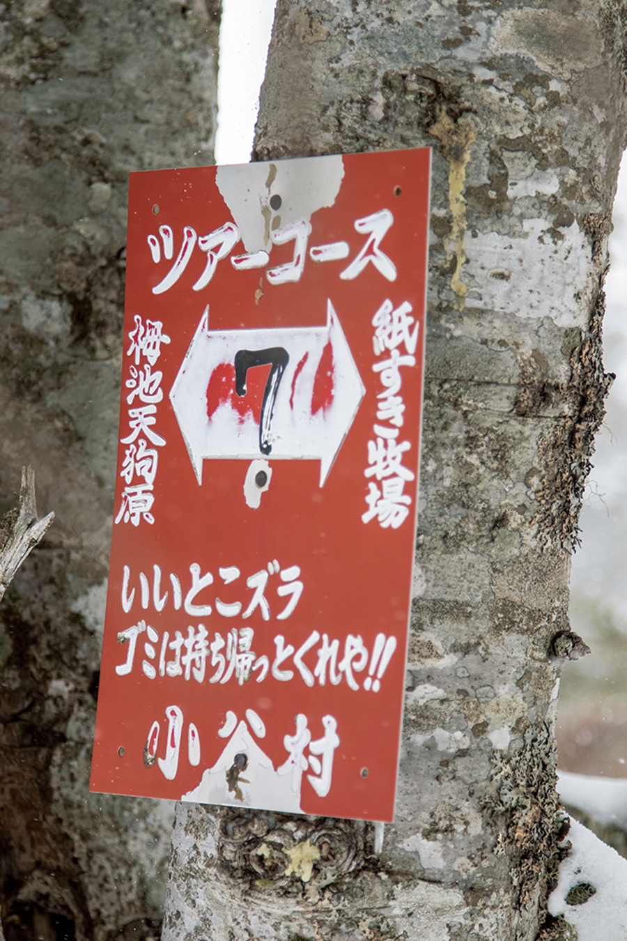 木地屋の集落から、舗装路を駐車場へと歩いていく。僕にとっては、いつか訪れたいと思い続けていたスキートリップを終えた瞬間だった。