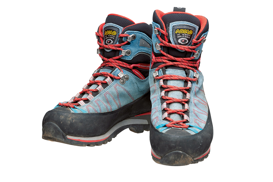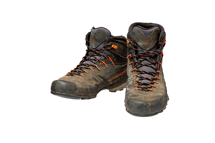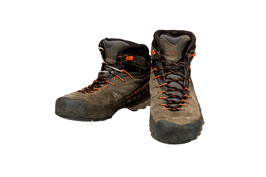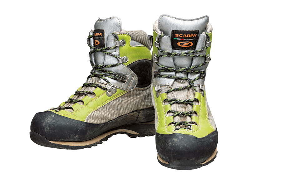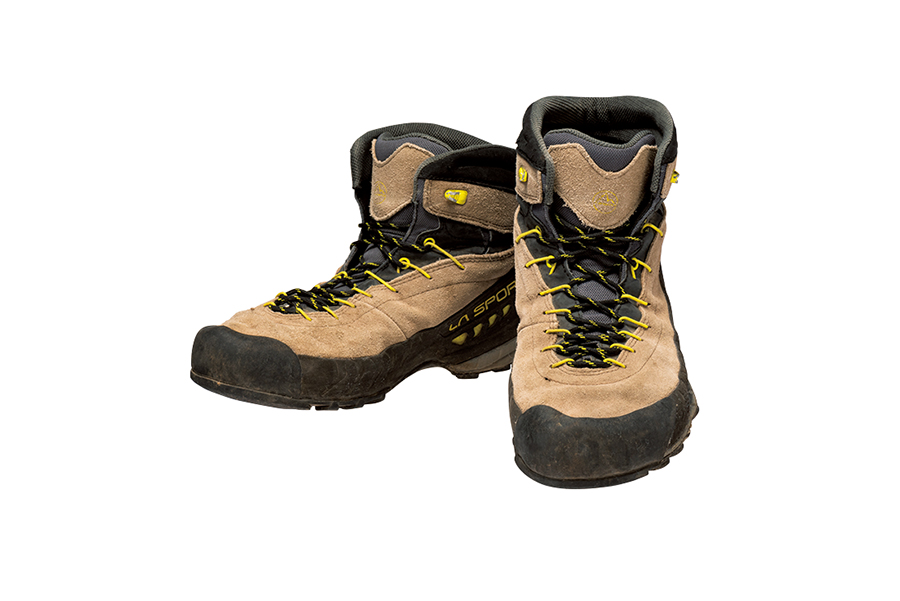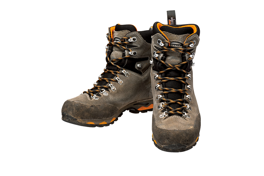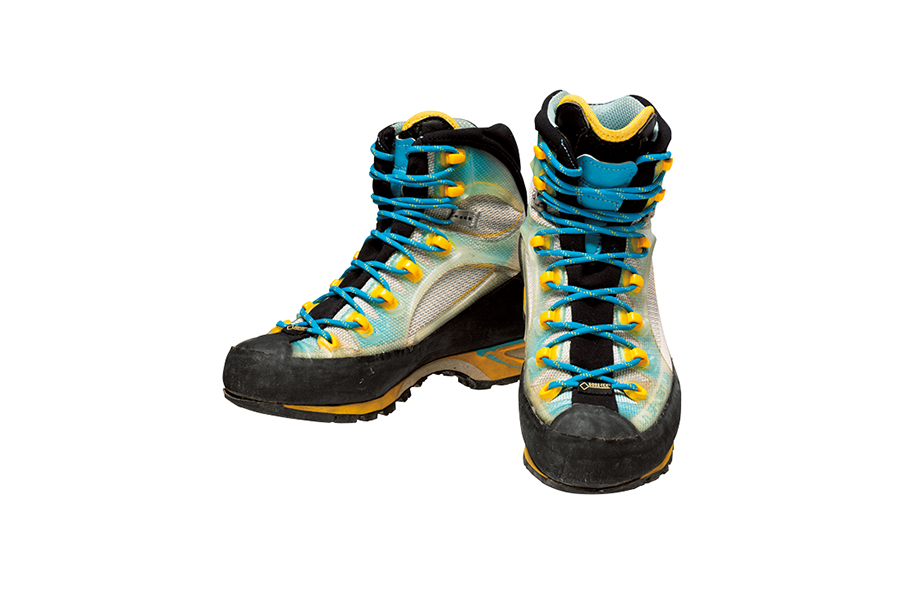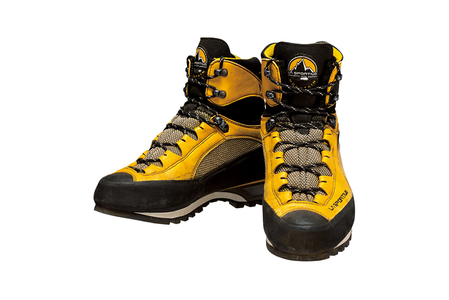 ❶A+Ⅱ+b❷日帰りの軽登山や南・北アルプスなど3,000m 級までの無雪期縦走で使用。長期間の海外トレッキングでも重宝した。❸すっきりしたシルエットと、ソールが硬すぎずやわらかすぎず、登山道も一般道も歩きやすいところ。❹長さ、幅、甲の高さ、足首まわりともに、靴と足との間に無駄なスペースがないものを選んでいる。