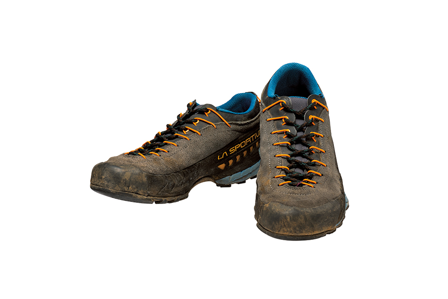 ❶A+Ⅰ+c❷おもにフリークライミングのアプローチで。ルートクライミングのギアはテント泊縦走と同程度の重さになり、アプローチで1時間かかるような場所で重宝。❸包み込むようなフィット感。軽いがしっかりした作りで重荷を背負っても安定感がある。グリップ力の高いアウトソールで濡れた岩の上でも滑りにくい。❹立ち込んだときにカカトが浮かず、幅が狭すぎないもの。