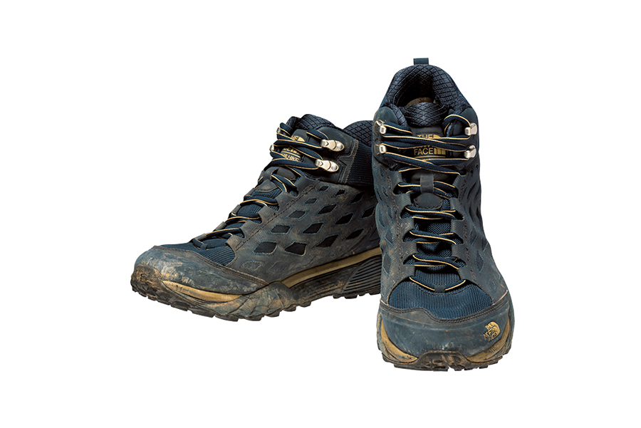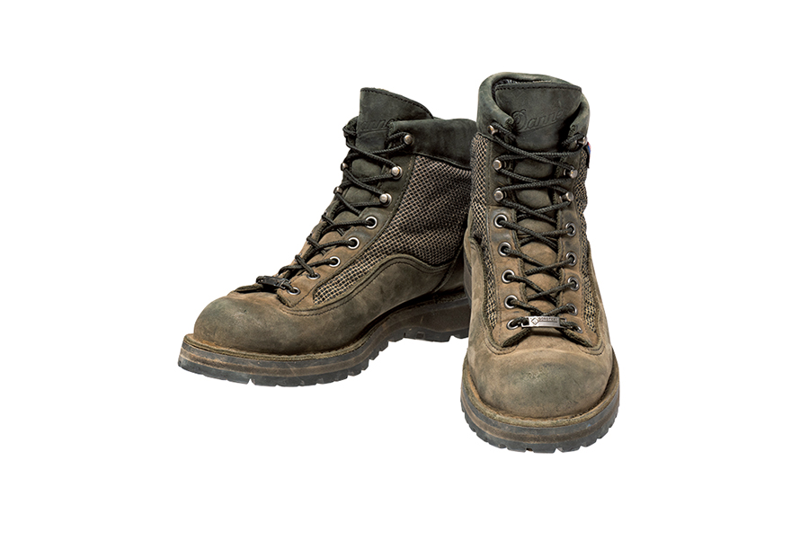 ❶B+Ⅰ+b❷米国や豪州のロングトレイルで使用。日本では低山エリアの範囲の広いトレイル歩き、とくに雨天時、湿地帯ではかならずこのブーツを選択する。❸独自防水透湿素材アウトドライは雨や濡れに強く乾きも早い。2足で合計2,000㎞以上歩いたが、 ヘタらず履き心地も抜群によかった。❹甲高な自分の足に合うタンの形状で判断し、紐をしっかり締めた状態でのフィット感も重視。