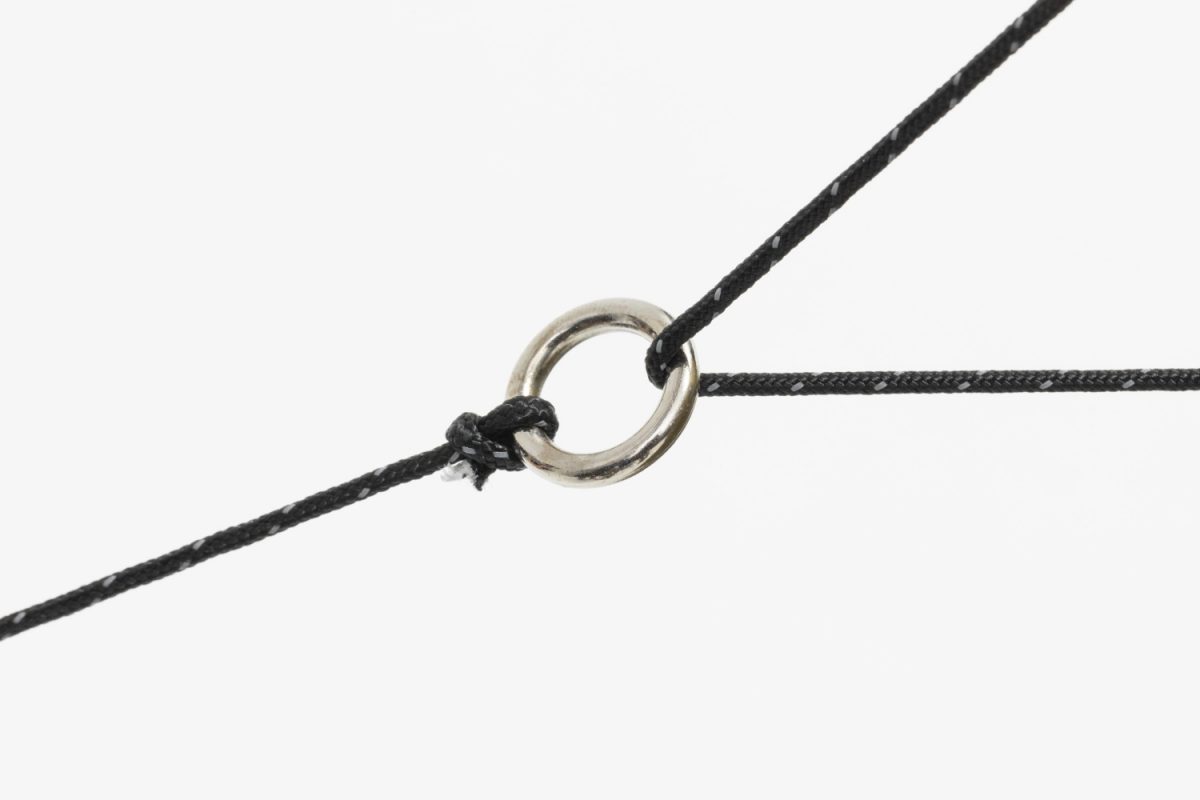 四方向に広げる張り綱のセンターにはリングを入れてY字型を形成。これにより平地以外でもしっかりとテンションをかけることができる。