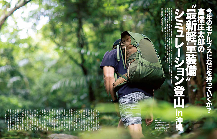 高橋庄太郎さんが今年発売された最新の軽量アイテムをメインに、過酷な環境の「北アルプス」でも使えるモノをピックアップ。夏の北アルプスの気温や季節感を合わせるために沖縄へ行き、じっくりテストしてきました!