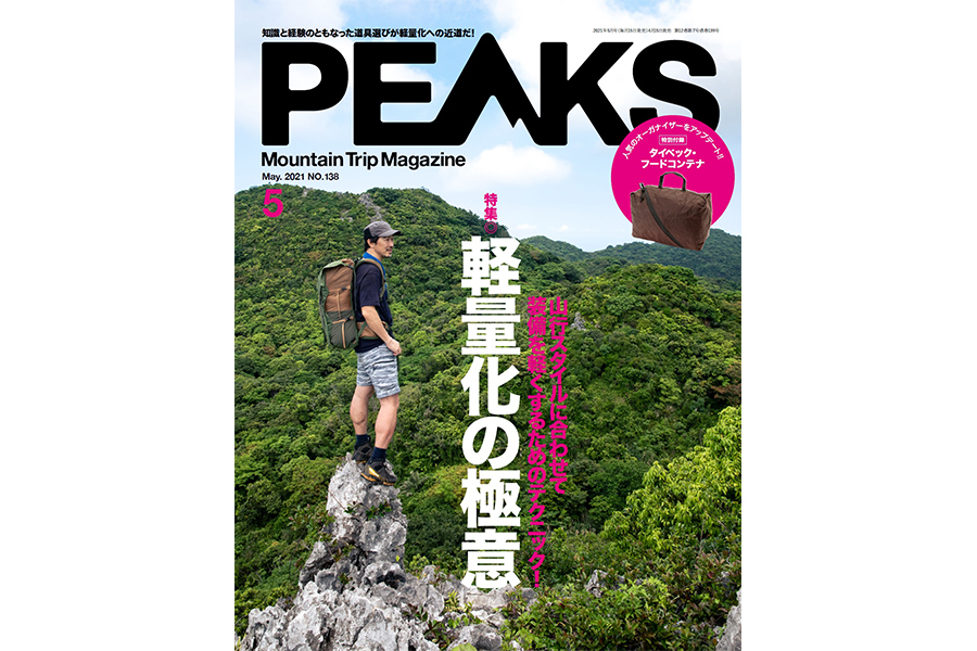 『PEAKS』5月号は軽量化の極意を大特集! 「タイベック・フードコンテナ」が特別付録。