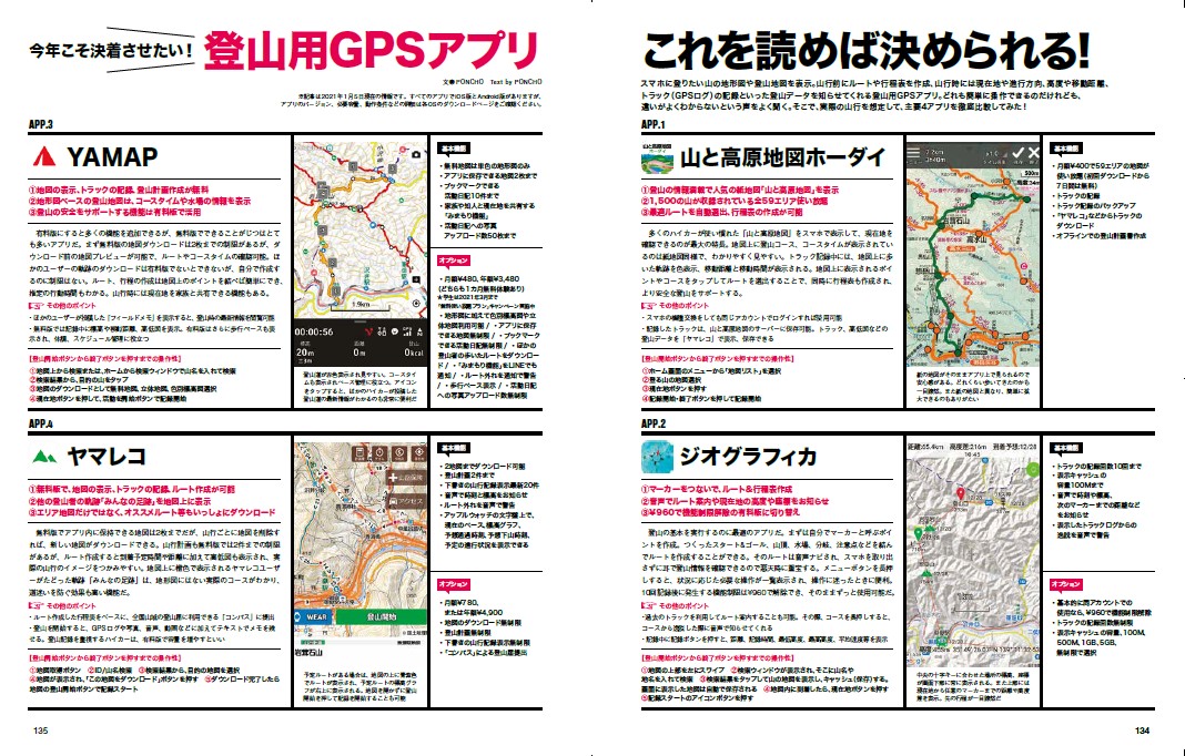 金額やオプション、使い方や機能など、細かい情報まで主要4アプリを徹底解説! 違いがよくわからない、こんな機能があるなんて知らなかった、そんな人もこれを読めばもっと効果的にアプリを使いこなせる。紙地図とうまく使いわけるともっと便利に!