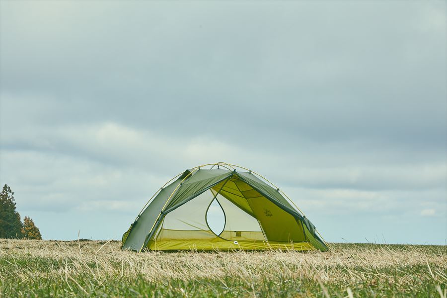 設営、撤収が簡単な軽量ダブルウォールテント。自立式なので場所を選ばず使え、天井部分のサブポールの効果によって居住性にも優れる。一部の仕様がカラーや異なる新モデルが今夏登場予定(2色展開)