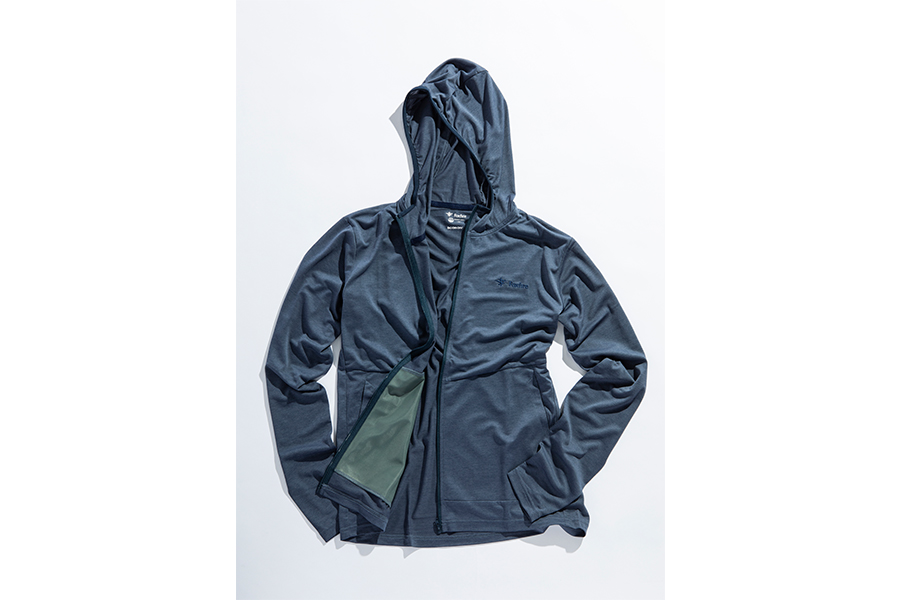 石井スポーツマロニエゲート銀座店・酒井秀彰さんのおすすめはSCファインタッチフーディだ。フルジップなのでさっと羽織れるし、さらりとした着心地もいい。UVカットの効果が高く、日焼け防止になるのも高ポイント。自身も愛用しているという。