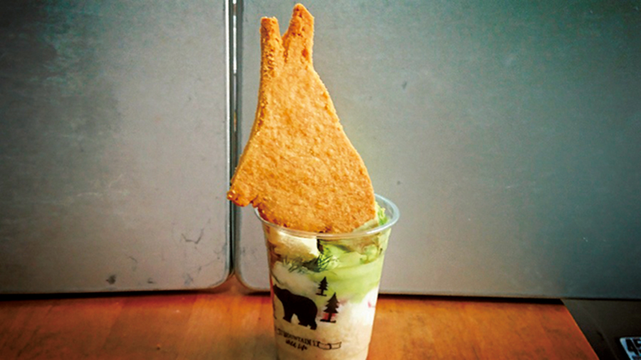 2020年9月、山をモチーフにしたパフェ店をパティシエの脇久雄さんが松本にオープンする。天を衝くワッフルコーンが印象的な「槍ヶ岳」(Sサイズ¥500)は、槍沢の雪渓を生クリームで表現するなどリアル感も追求。下山後に立ち寄ってみたい。